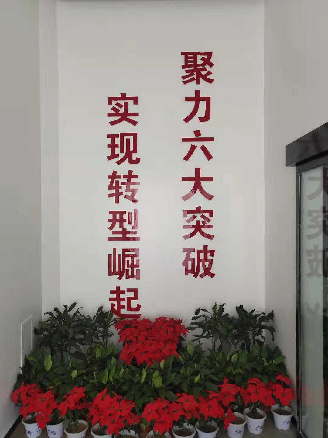 最終擬定標語“聚力六大突破,實現(xiàn)轉型崛起”。標語張貼在我公司信息化管理中心大廳內,信息化管理中心參觀人數(shù)多,可以更好地起到宣傳文明標語的作用。下圖為信息化管理中心張貼的文明標語。